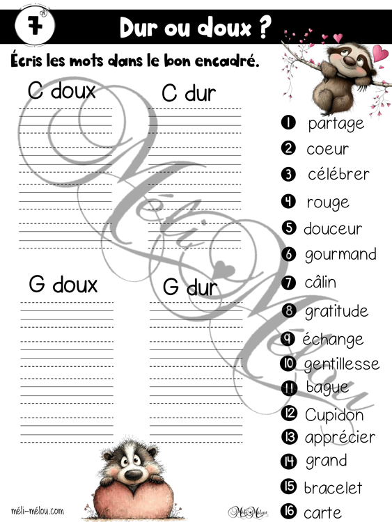 10 pages d’activités en français sur le thème de la St-Valentin pour les élèves du premier cycle.