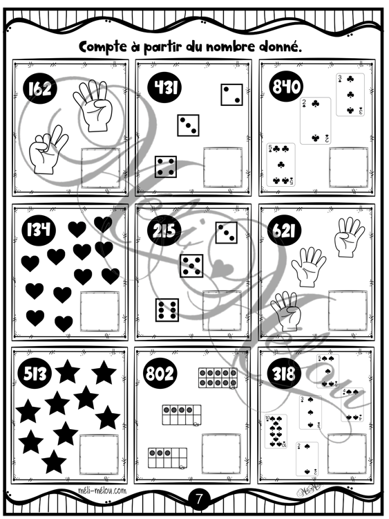 12 pages d’exercices afin de consolider le dénombrement des nombres de 0 à 1000.