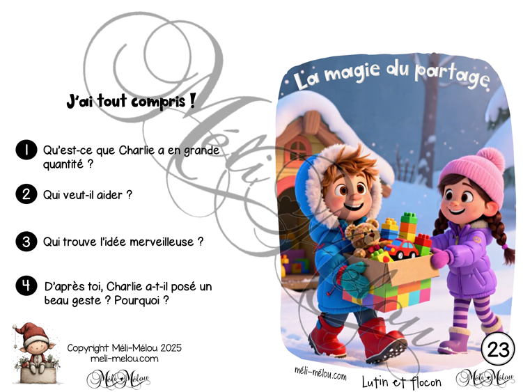 Petit livret de lecture de 8 pages sur le thème de Noël pour lecteurs débutants. Au dos de chaque livret, il y a 3 questions de compréhension et une question de réaction.