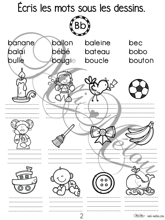 Après avoir lu les mots, l’élève doit les inscrire sous la bonne image. Sur chaque page, qui couvre tout l’alphabet, on trouve 12 mots simples où les lettres muettes à la fin des vocables ont été grisées.