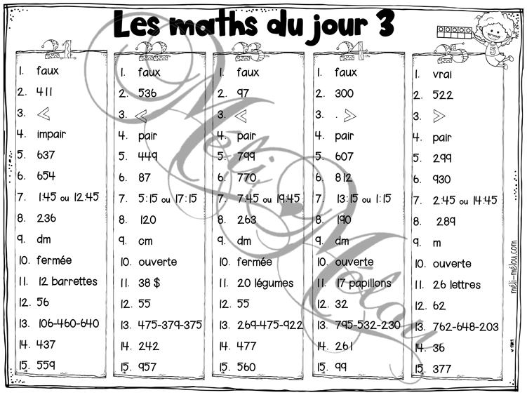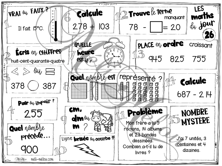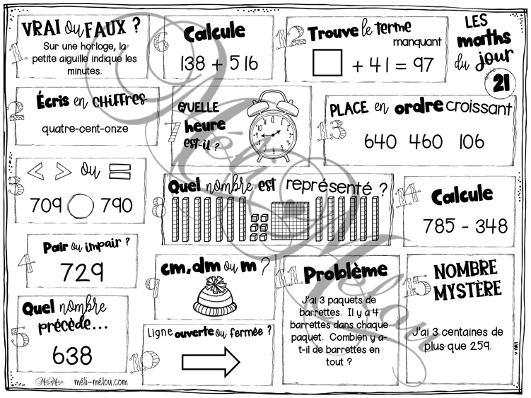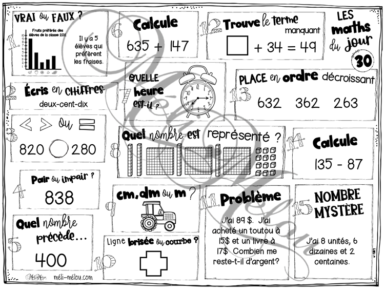 10 pages de 15 petites activités pour réviser les notions mathématiques de deuxième année.