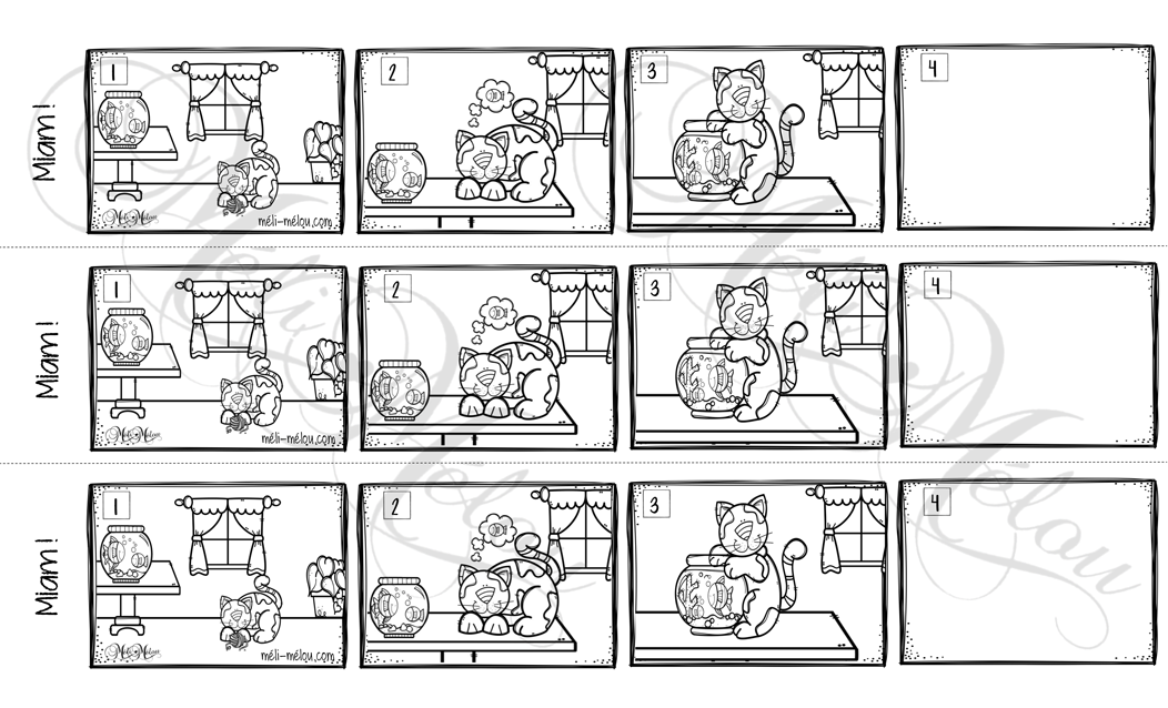 Sur chaque document, il y a 3 ou 4 signets où vous trouverez des histoires séquentielles en 4, 5 ou 6 images. Pour chaque histoire, vous trouverez sur mon site le lexique propre à chaque histoire.